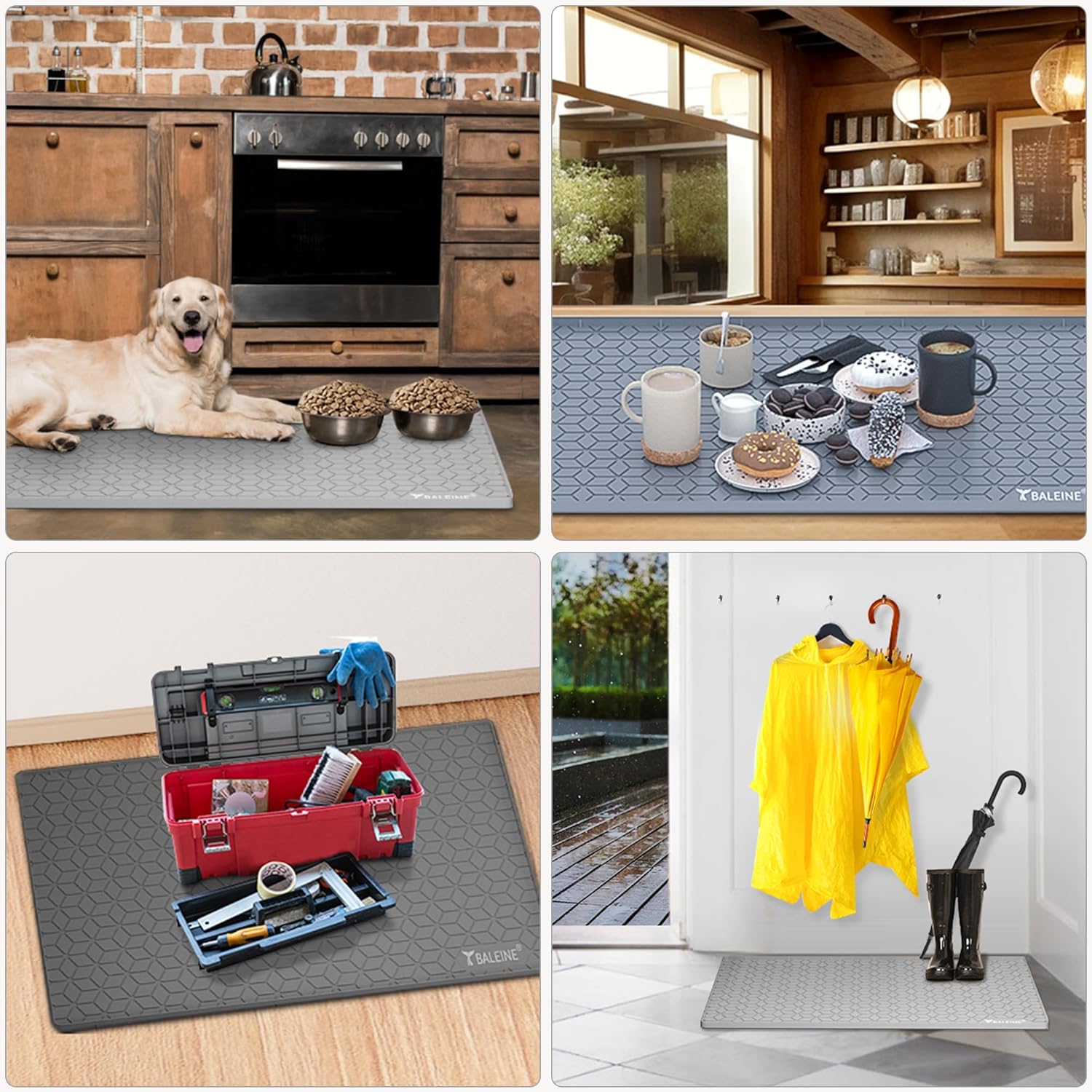 Safety and Versatile: This under the sink mat waterproof is BPA-free, and odorless; The undersink waterproof mat is wear-resistant, an ideal choice not only for under sink liner but also as a pet mat, heat insulation pad, placemats, flowerpot mat, dish drying mat