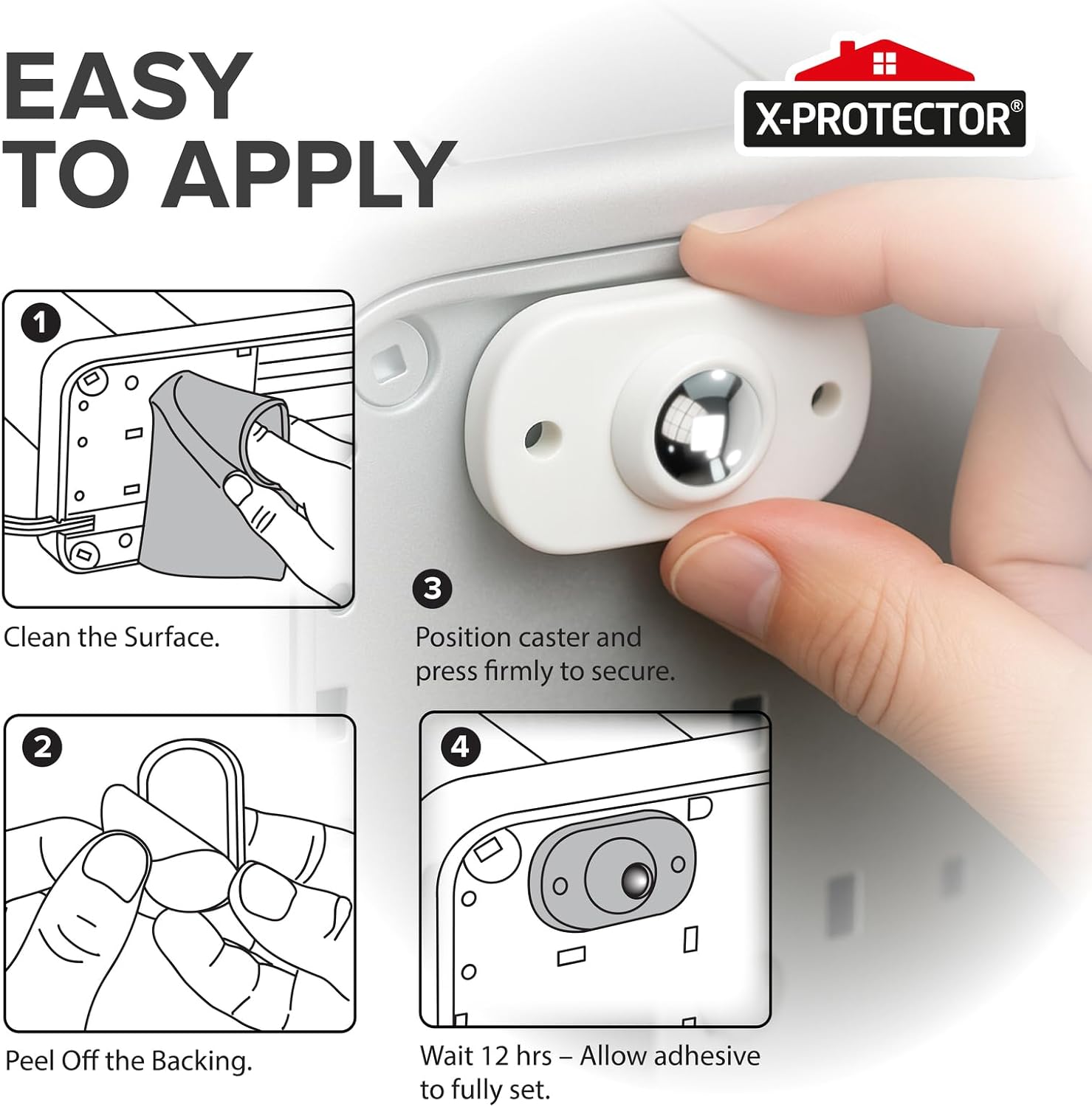 ✌️ Smooth 360° Rolling – X-Protector self adhesive caster wheels glide in any direction, making it easy to pull appliances forward for use and push them back for storage. No loud noise, no resistance!